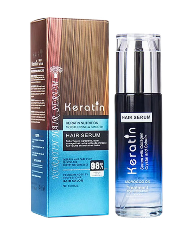سرم مو کراتین با ۹۸ درصد کراتین موهای شما را به سرعت صاف، نرم و درخشان میکند. سرم موی کراتین ترکیبی دارای پروتئین های هیدرولیز شده کراتین، سیلیکون ها، ویتامین E و ویتامین B5 است. این سرم موهای آسیبدیدهی شما را ترمیم میکند و باعث استحکام مو و افزایش رشد آن میشود. این سرم حجم موهای شما را بیشتر نشان میدهد و همچنین ضدموخوره میباشد.